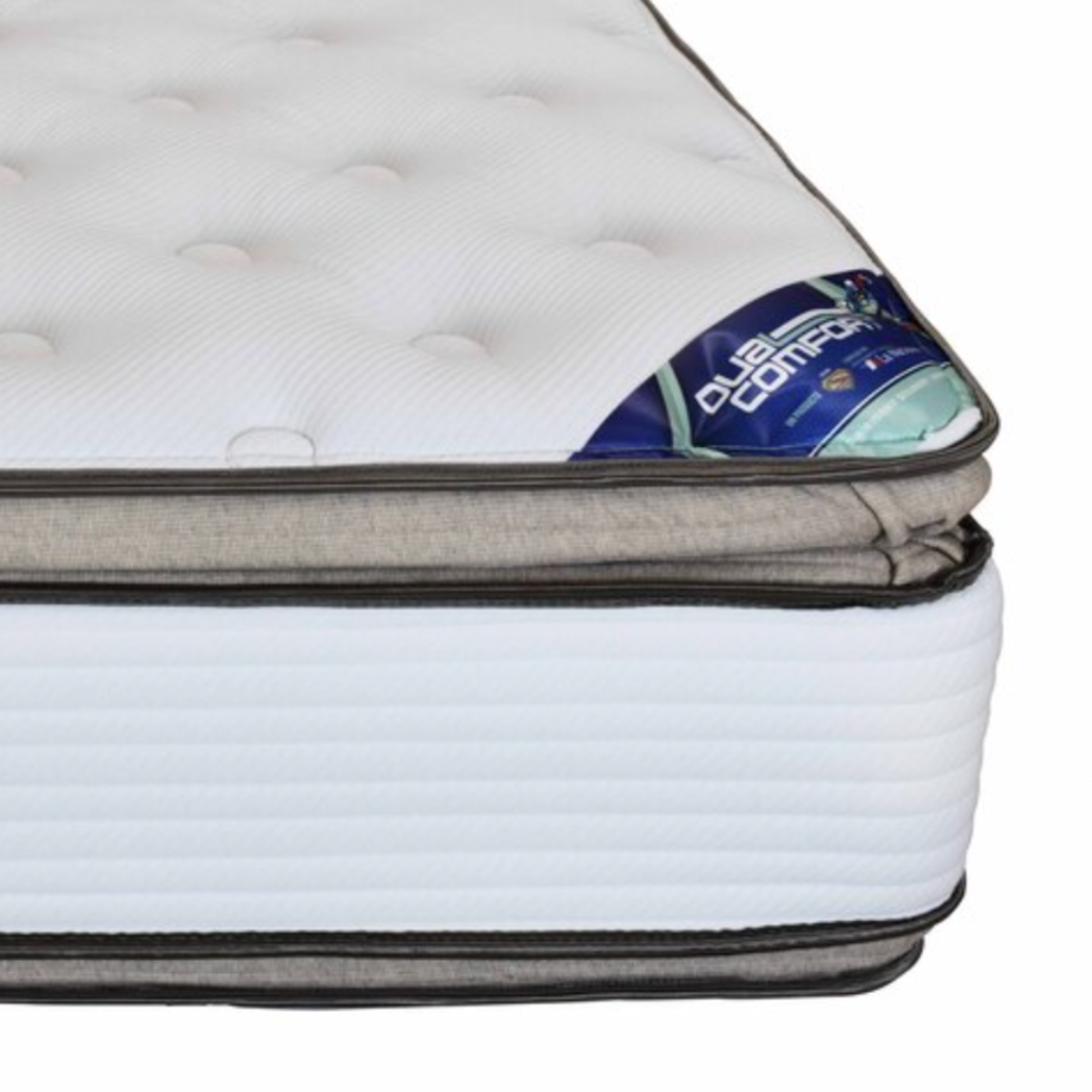 El Colchón Dual Comfort está diseñado para quienes buscan llevar su descanso a otro nivel. Gracias a su sistema de doble cara y su exclusivo Doble Pillow Top, ofrece dos superficies de descanso con tecnología de triple capa, garantizando un confort superior y una mayor durabilidad.